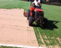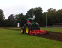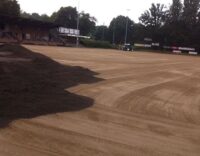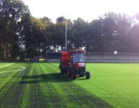 Het kunstgrasveld is eind van deze week zo goed als klaar