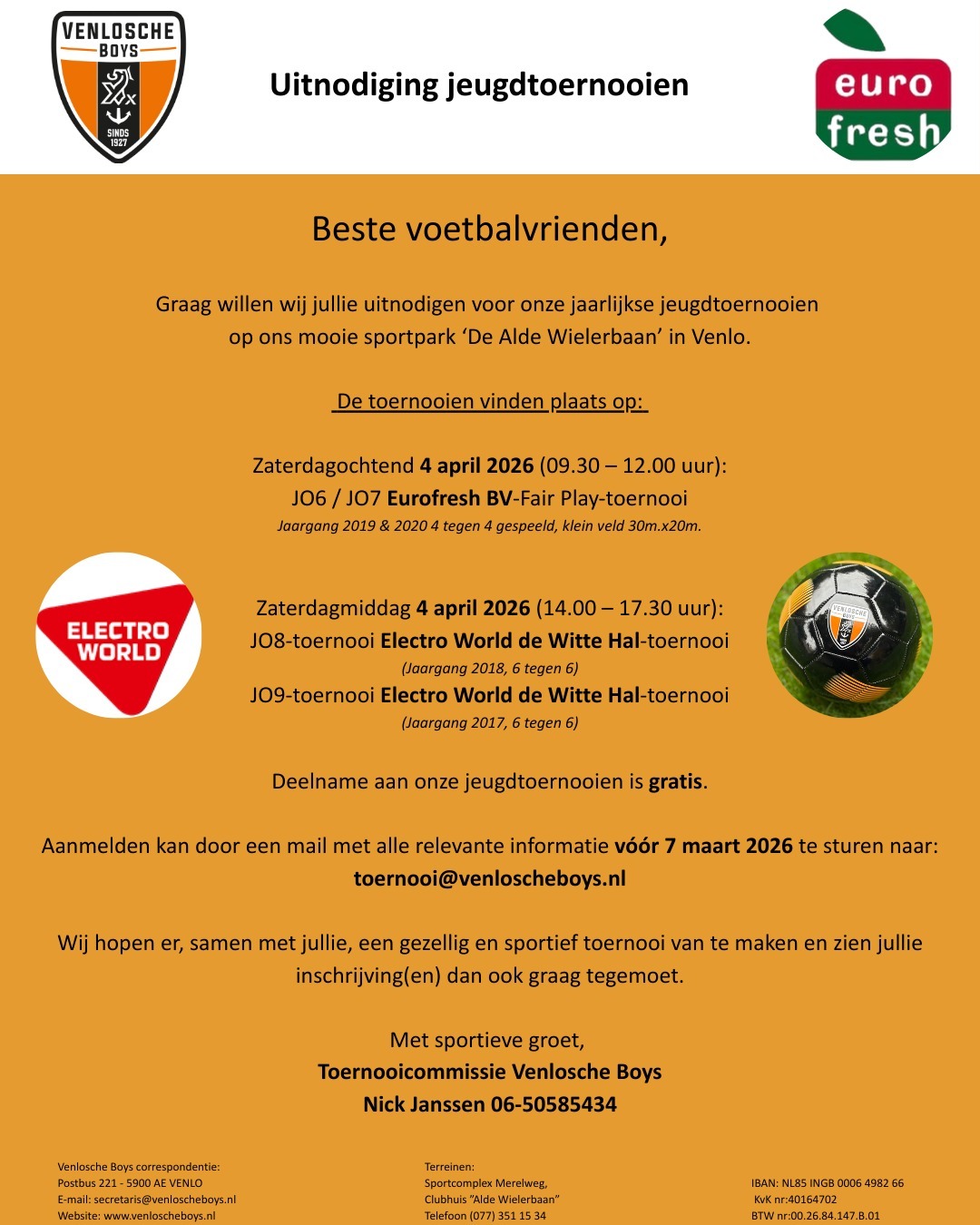 | 4 april 2026 | Jeugdtoernooien | Venlosche Boys | Venlo | link | link | link | |